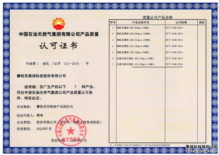 • 中石油質(zhì)量認(rèn)可證